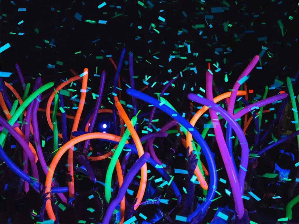 Students dancing at glow in the dark prom with glow balloons and necklaces in Pittsburgh